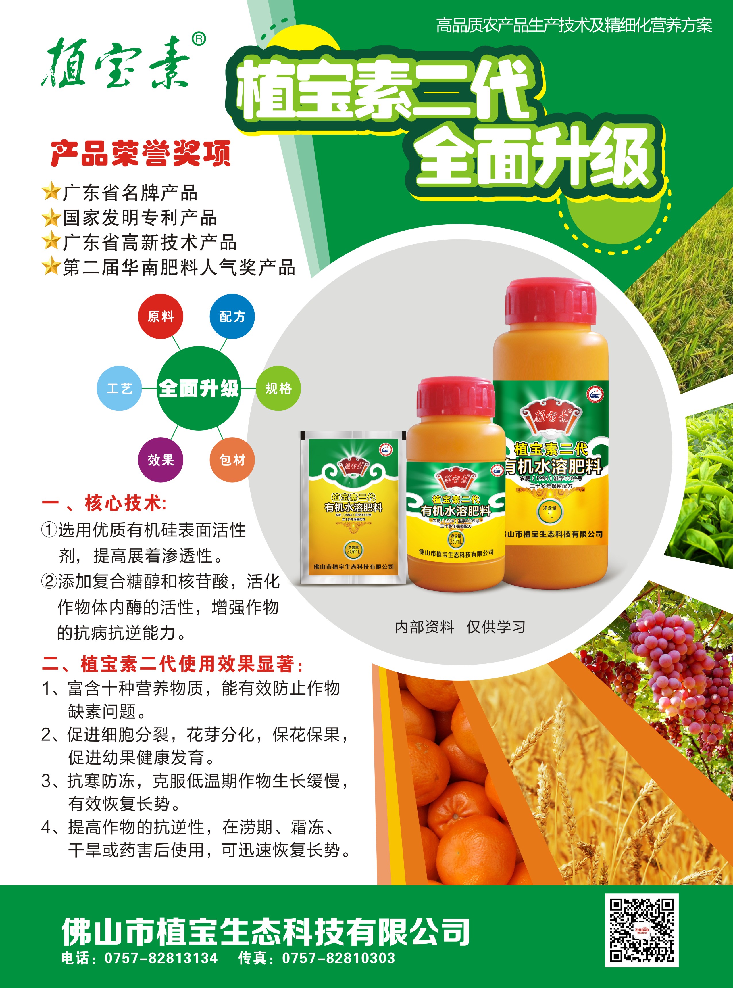 佛山市植寶生態(tài)科技有限公司一直秉承“傳承、專注、創(chuàng)新,爭(zhēng)創(chuàng)百年品牌”的理念,以“加強(qiáng)品牌建設(shè),打造一流企業(yè)”為目標(biāo),一直走科技創(chuàng)新的道路,用科技來加持產(chǎn)品,用科技強(qiáng)化品牌。近日,廣東省農(nóng)業(yè)農(nóng)村廳公布的《關(guān)于公布2023年度“粵字號(hào)”農(nóng)業(yè)品牌目錄名單的通知》,我司植寶素牌有機(jī)水溶肥料、鎘無(wú)憂牌有機(jī)水溶料(鎘無(wú)憂)、活力牌根葉旺含腐植酸水溶肥料3種肥料再次入列!