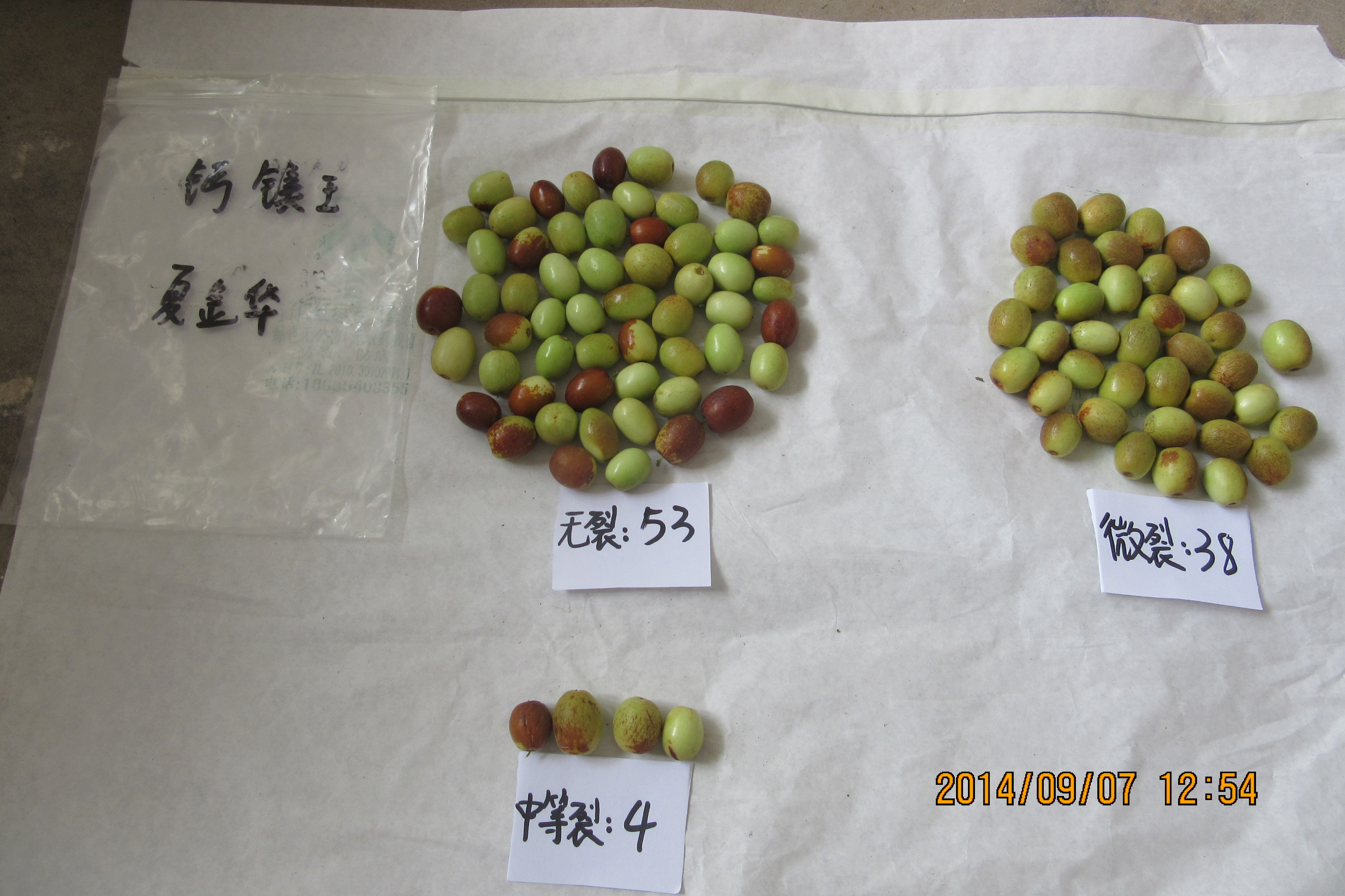 山東省樂陵市作為傳統棗區(qū),在科技小院的指導下,傳統棗區(qū)的管理水平大幅提高。但由于今年前期干旱,入秋后連日陰雨,樂陵市部分地區(qū)的小棗裂果率到達70%,產量和品質受到極大影響。然而郭家街道南夏村夏金華農戶的金絲小棗在使用了新一代植寶素系列鈣美王產品之后,棗樹很少出現裂果,而且還能促進果實著色。當地市林業(yè)局組成考察組就防裂技術進行了考察,在山東省樂陵市農業(yè)科技小院的科學指導下,鈣美王產品在當地得到大面積推廣。